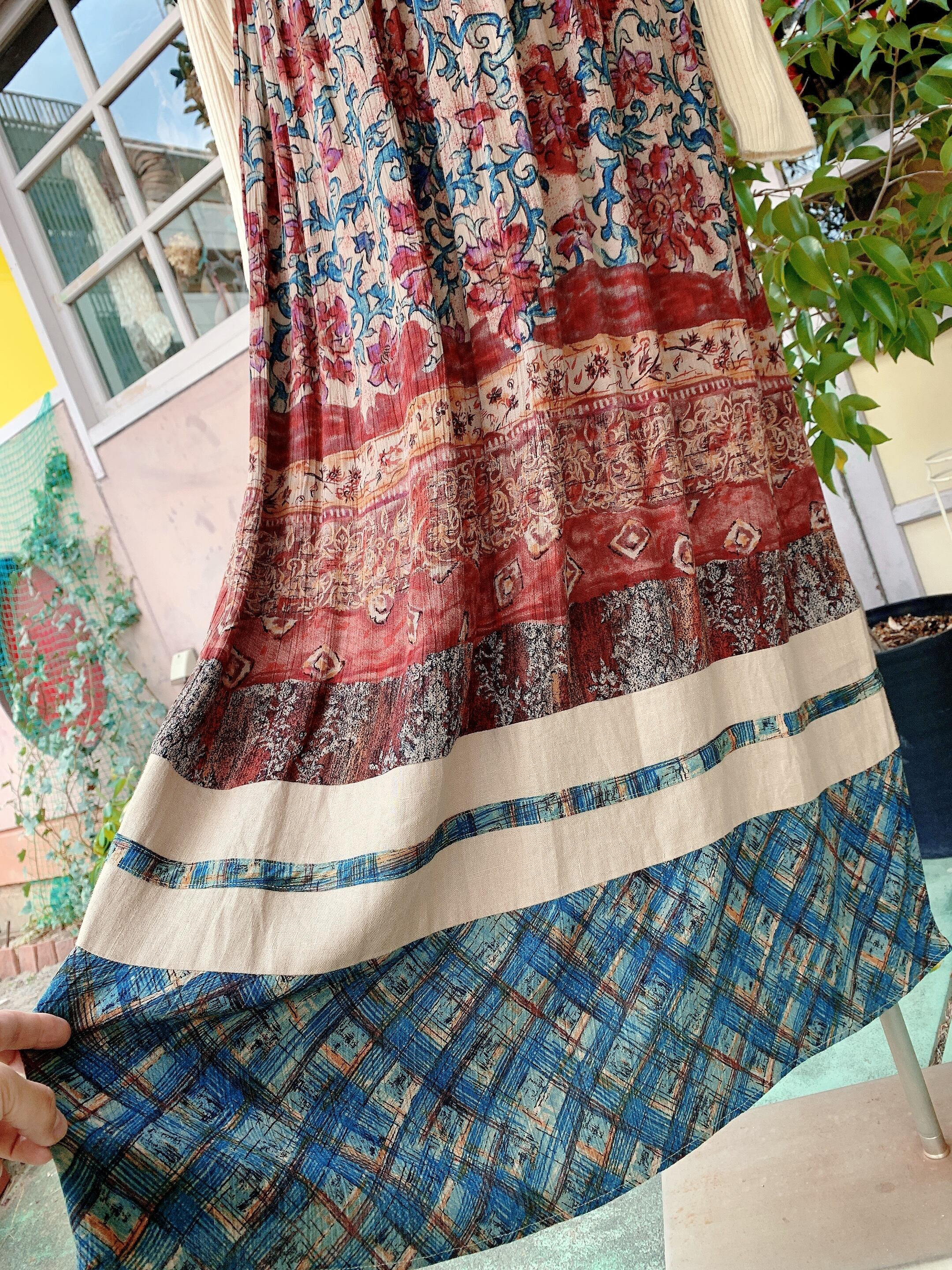 グラデーションのようにデザインされたスカート部分が魅力的なヴィンテージのワンピースです。