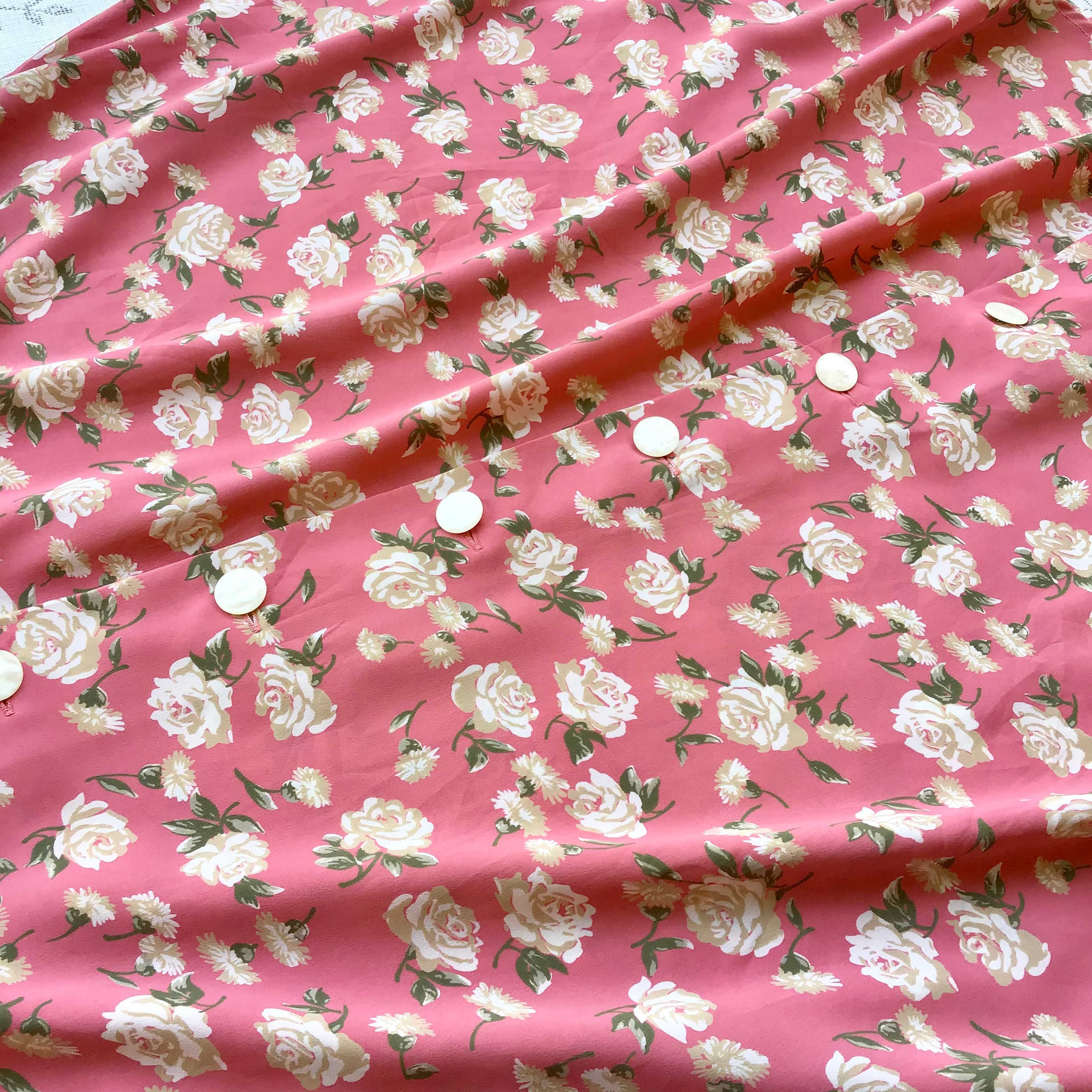 ピンク地に白いバラや花の模様が入った生地のデザインも、愛らしいですね。